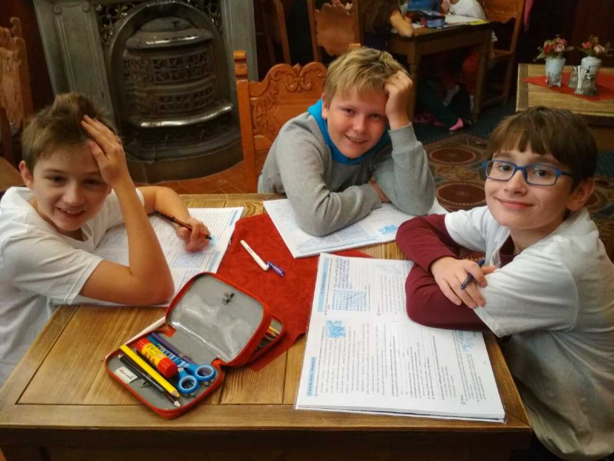První ráno ve Špindlu jsme zahájili taneční rozcvičkou v nádherné přírodě Krkonoš a po snídani se věnovali dopolední výuce českého jazyka a matematiky.