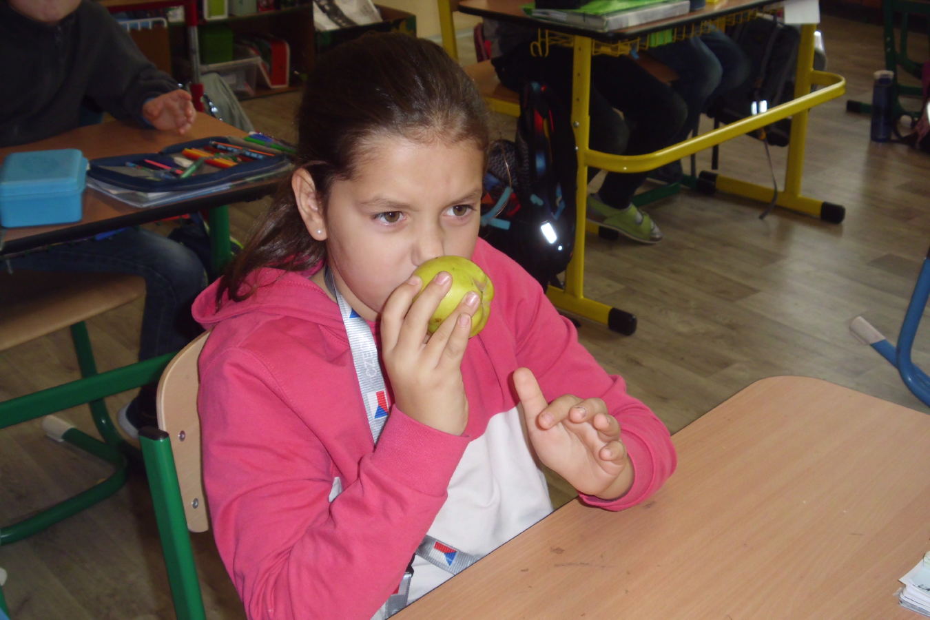Nejdříve jsme si hodně povídali o tom, jaké ovoce (ale i zelenina) se na podzim u nás sklízí. Už víme, jak ovoce (zeleninu) uchovávat a zpracovávat, aby nám vydržela co nejdéle. Seznámili jsme se i s méně známými druhy, jako jsou např. kdoule, moruše, ačokča, aronie.. Některé jsme i ochutnali!![]()