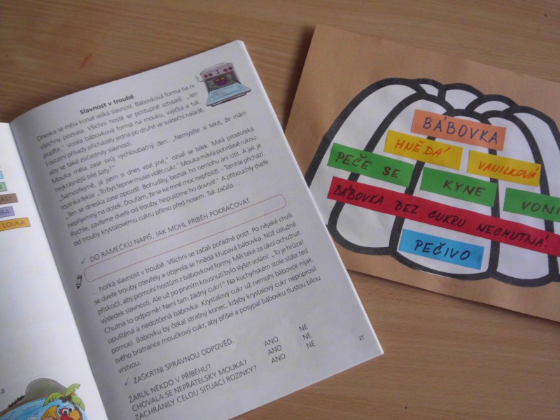 Prvňáčci si už dovedou poradit s opravdu náročnými a dlouhými texty. Tento týden jsme si jeden takový opět přečetli a společně se v něm podívali do kuchyně. Všichni už teď víme, co potřebujeme k upečení bábovky a na co nesmíme zapomenout, aby nám chutnala.