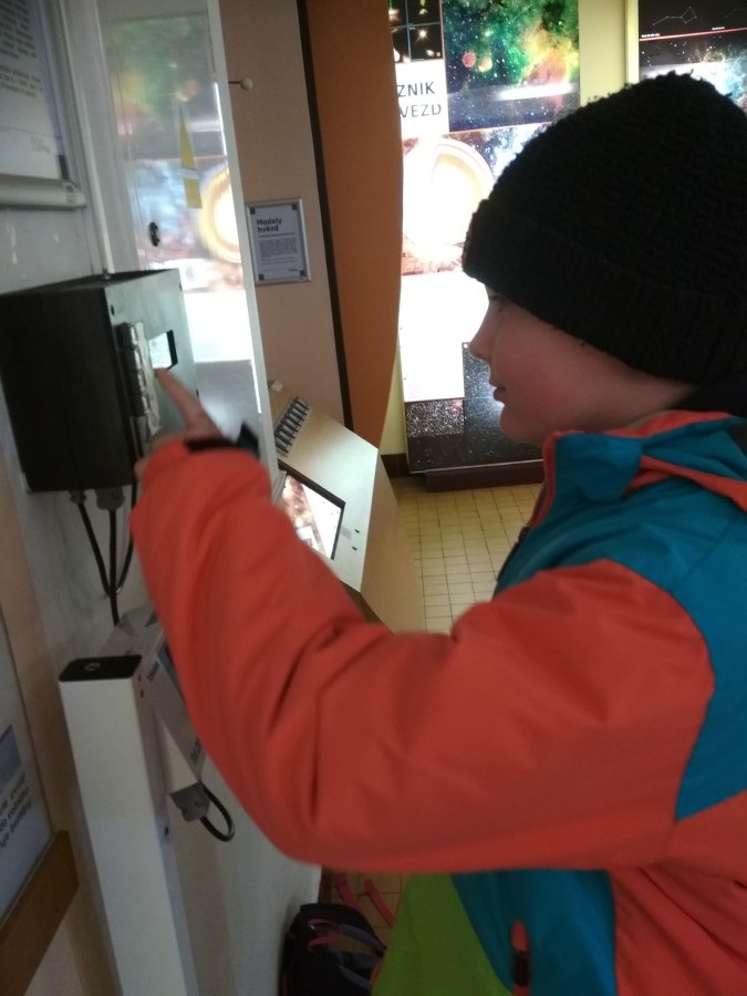 Nakonec si děti mohly prohlédnout obrovský dalekohled a zvážit se na astronomické váze, kde zjistily, kolik by vážily na Slunci, na Měsíci či na planetě Jupiter.