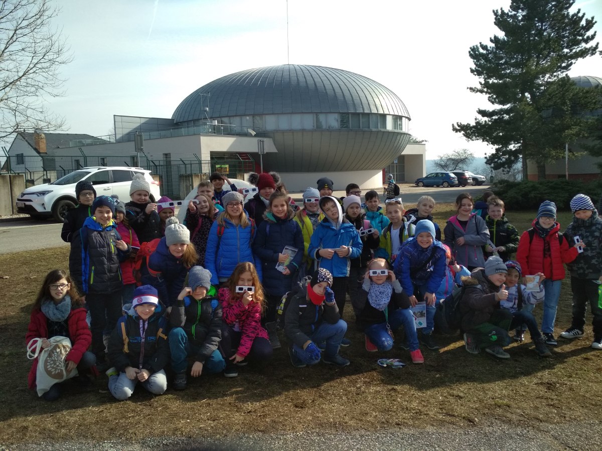 Dne 25. 2. třídy III. A a III. B navštívily Hvězdárnu a planetárium v Hradci Králové. Žáci si nejprve prohlédli modely jednotlivých planet a další zajímavosti ze světa vesmíru. Následně se přesunuli do tzv. kupole, kde mohli nad svými hlavami sledovat zimní oblohu a její souhvězdí. Program v kupoli byl zakončen veselou pohádkou o medvědu a tučňákovi, kteří se vydali do vesmíru prozkoumat, proč je na severním a jižním pólu planety Země a Mars tolik ledu a na planetě Saturn a Jupiter nikoliv.