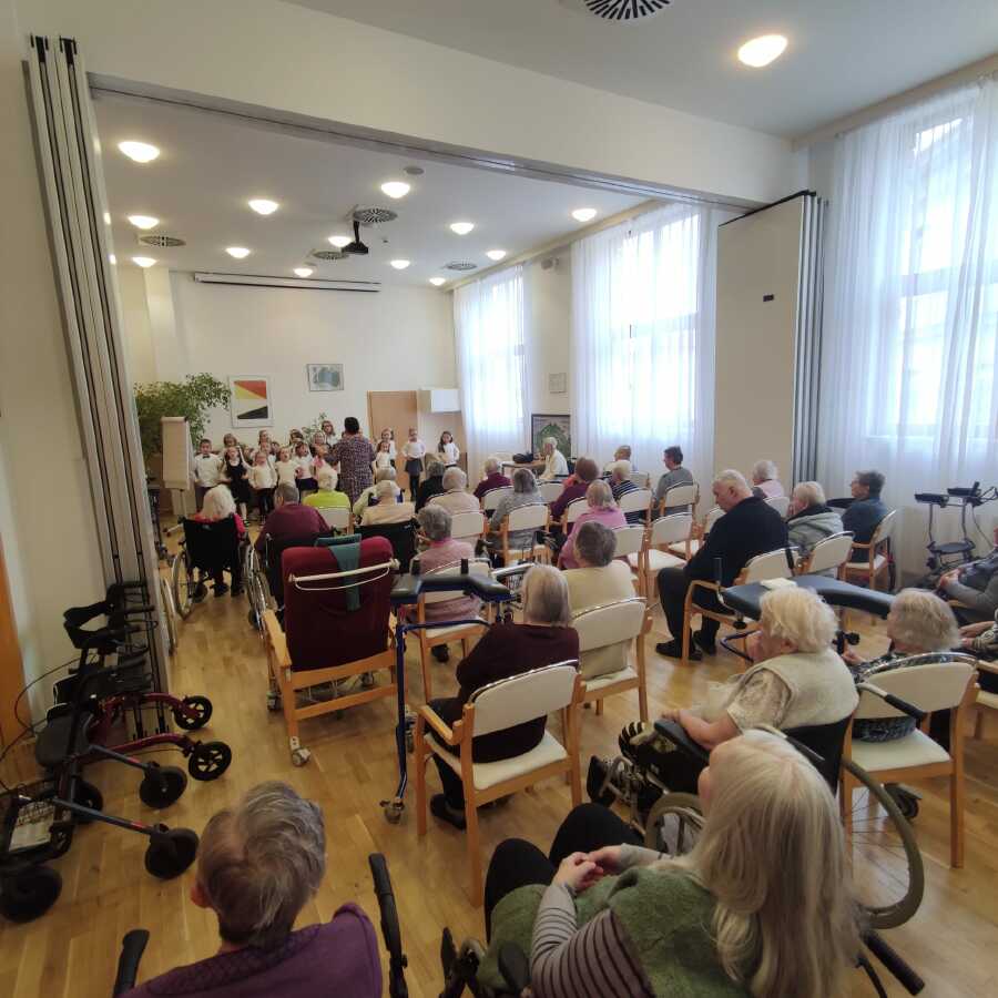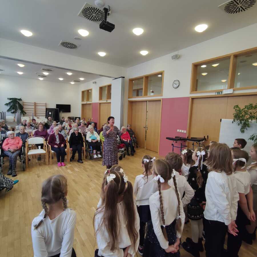 Pro některé děti to bylo první veřejné vystoupení. Malí zpěváčci přinesli do Domova pro seniory radost a byli odměněni velkým potleskem.