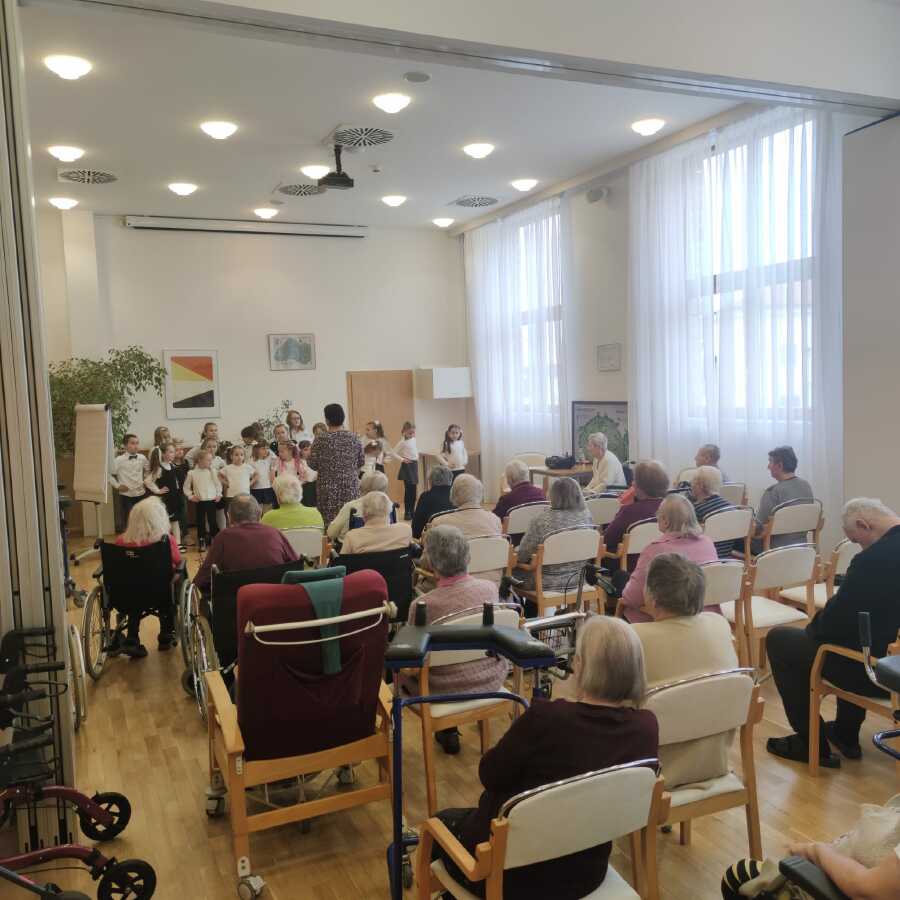 V úterý 11.11. zazpíval školní Pěvecký sbor Palášek babičkám a dědečkům v Domově Barbora.