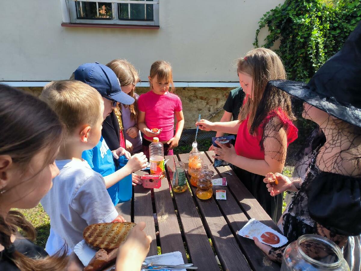 Děti se s nadšením zapojily do nejrůznějších soutěží, které pro ně připravili hostitelé. Nechyběly ani napínavé a zábavné čarodějnické pokusy, při kterých si malí kouzelníci a čarodějnice mohli vyzkoušet nejrůznější lektvary.Kromě sladkého a slaného pohoštění ve stylovém čarodějnickém provedení si děti pochutnaly i na výborných buřtech.