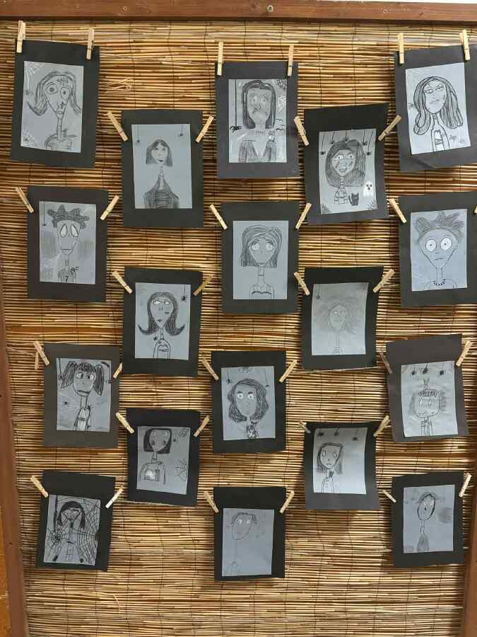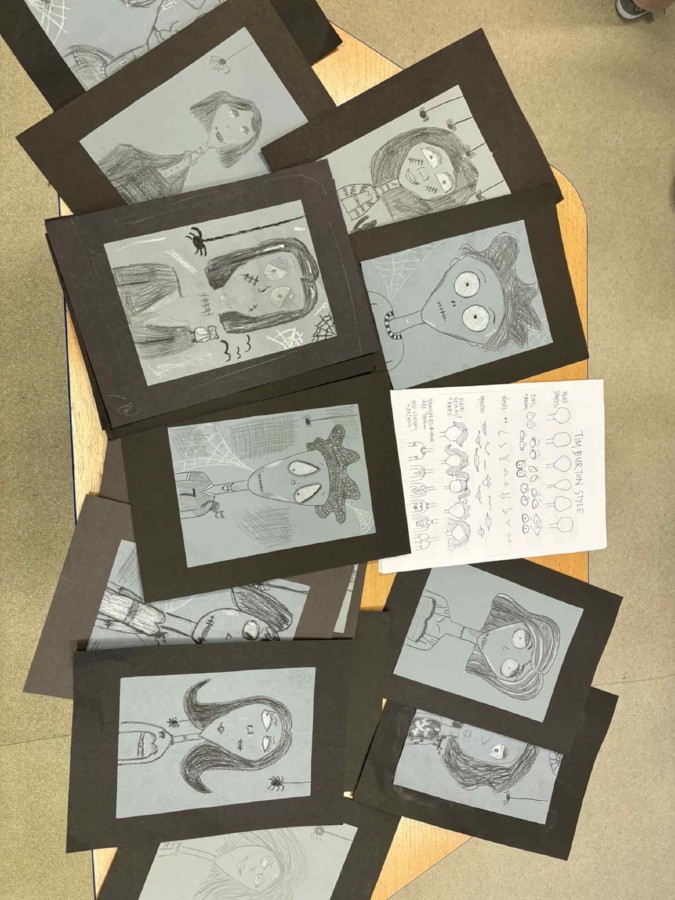 Dnešní výtvarka se nesla v duchu halloweenského tvoření. Výborným příkladem takové tvorby je tvorba Tima Burtona a tak jsme se nechali inspirovat.