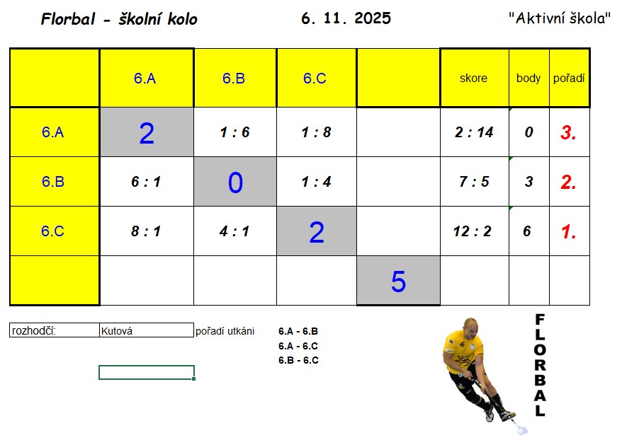 Dne 6.11. 2025 se na naší škole uskutečnil turnaj ve florbalu.