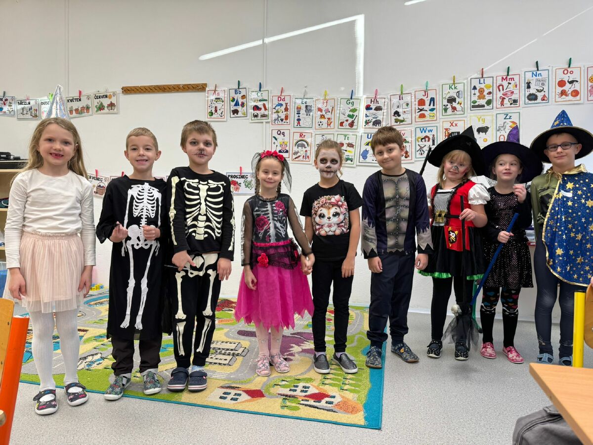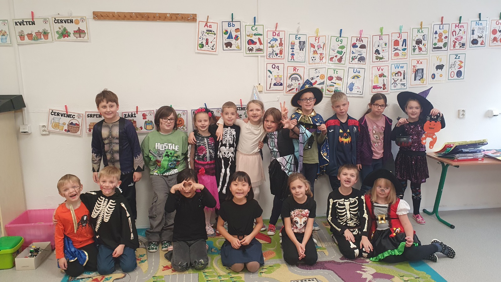 V pátek jsme si užili kouzelný den. Do třídy přišli duchové, bílá paní, upírka, kostlivci a další krásná strašidla. Den jsme zahájili strašidelným tělocvikem, zahráli si na zombíky a přečetli duchařskou pohádku. O češtině děti plnily halooweenské úkoly a o výtvarné výchově malovaly nejen duchy, ale vyráběly i halloweenský dýňový košíček. Domů si děti na památku odnesly diplom i krásnou nafukovací dýni!