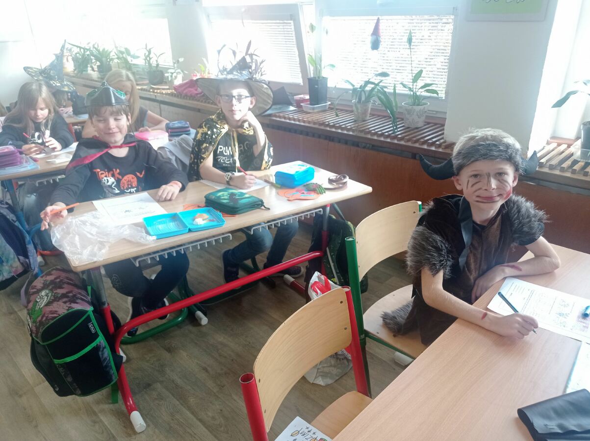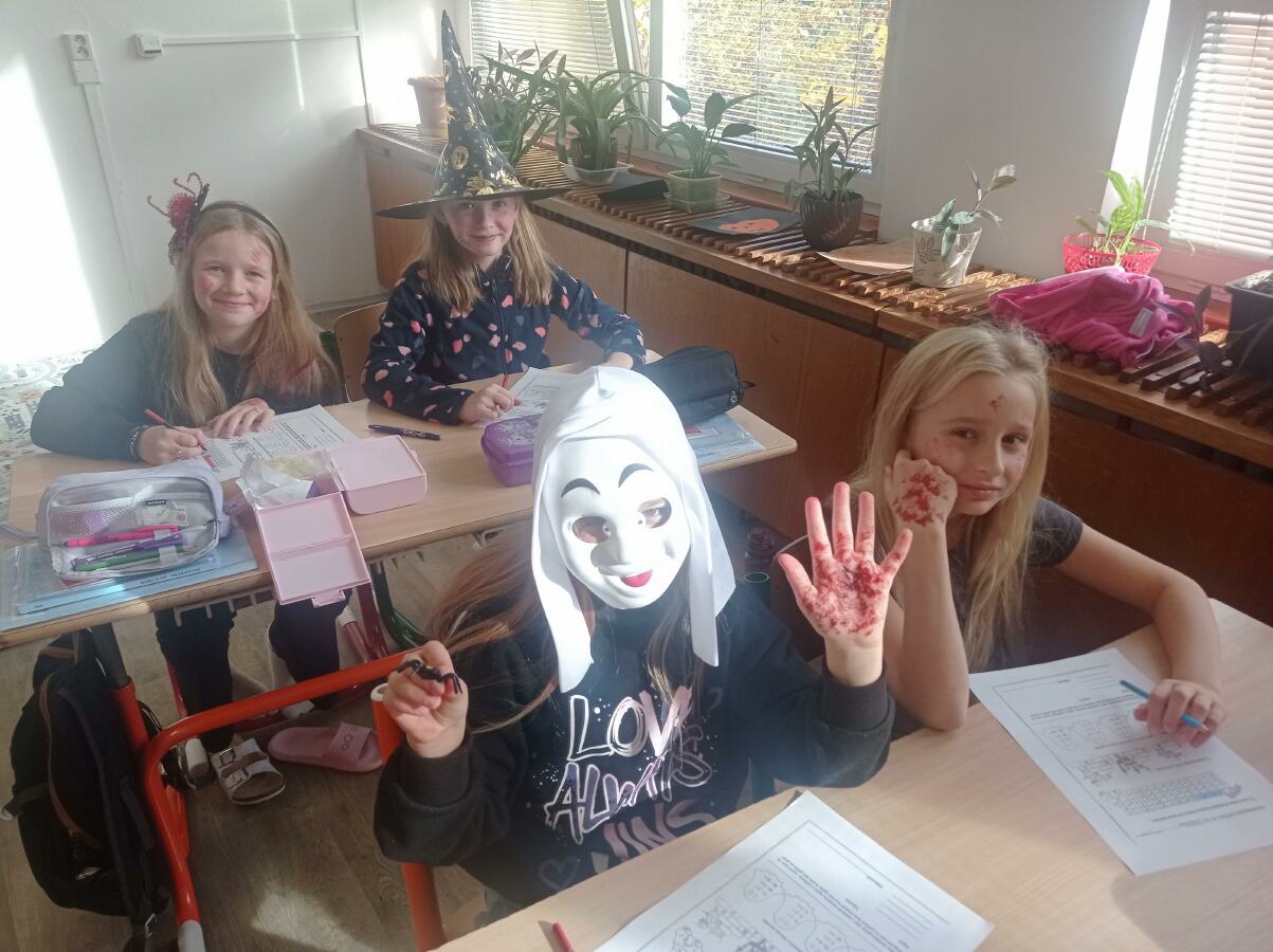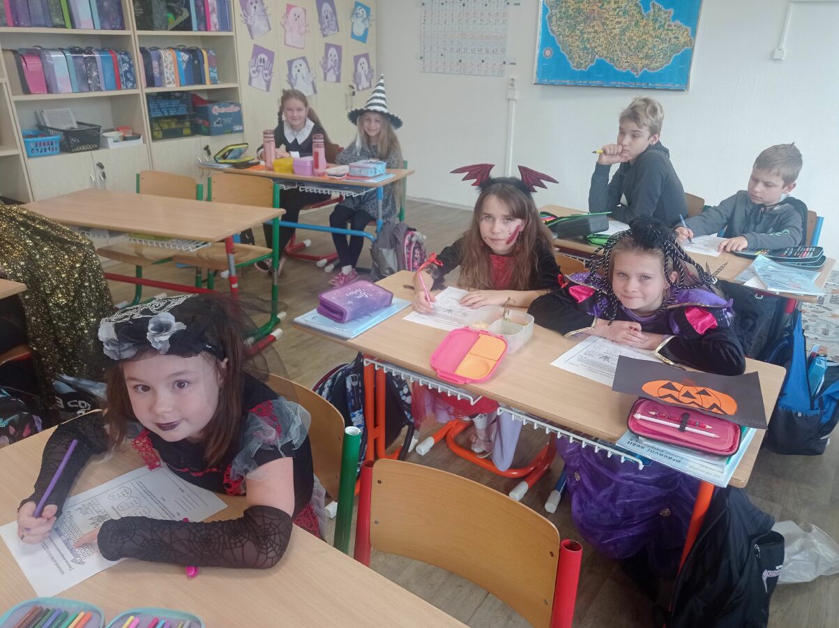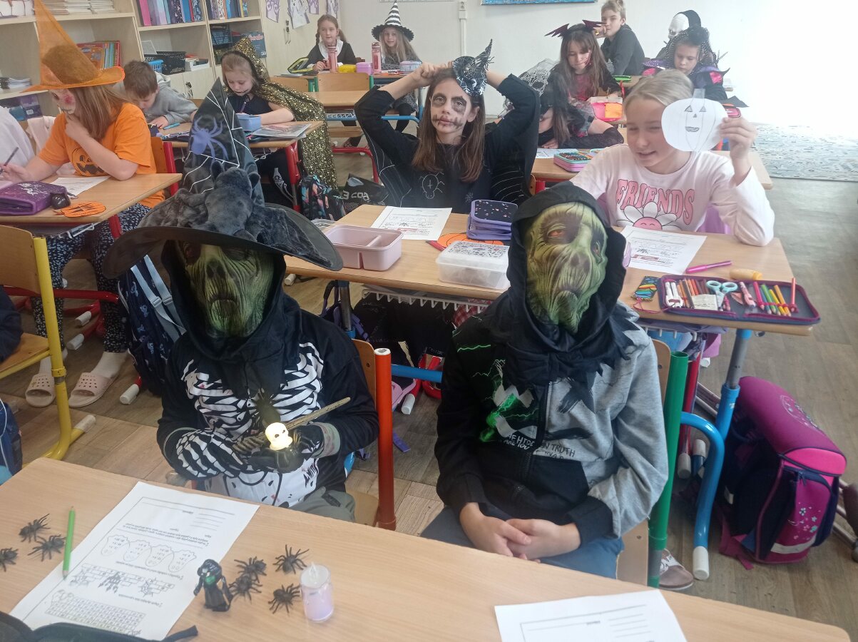 Ale ani to je neodradilo od halloweenského počítání, velkého focení a hodování samých dobrůtek. Milé překvapení jsme dostali, když se na nás přišla podívat paní učitelka Vlasáková!