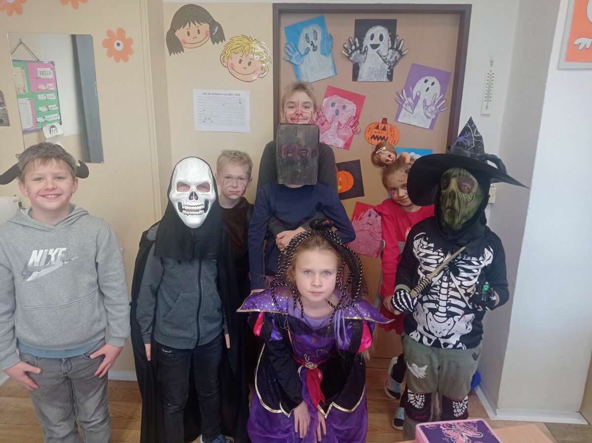 Říjen jsme zakončili oslavou halloweenu! Po návratu z plavání se v naší třídě téměř všechny děti proměníly ve strašidláky