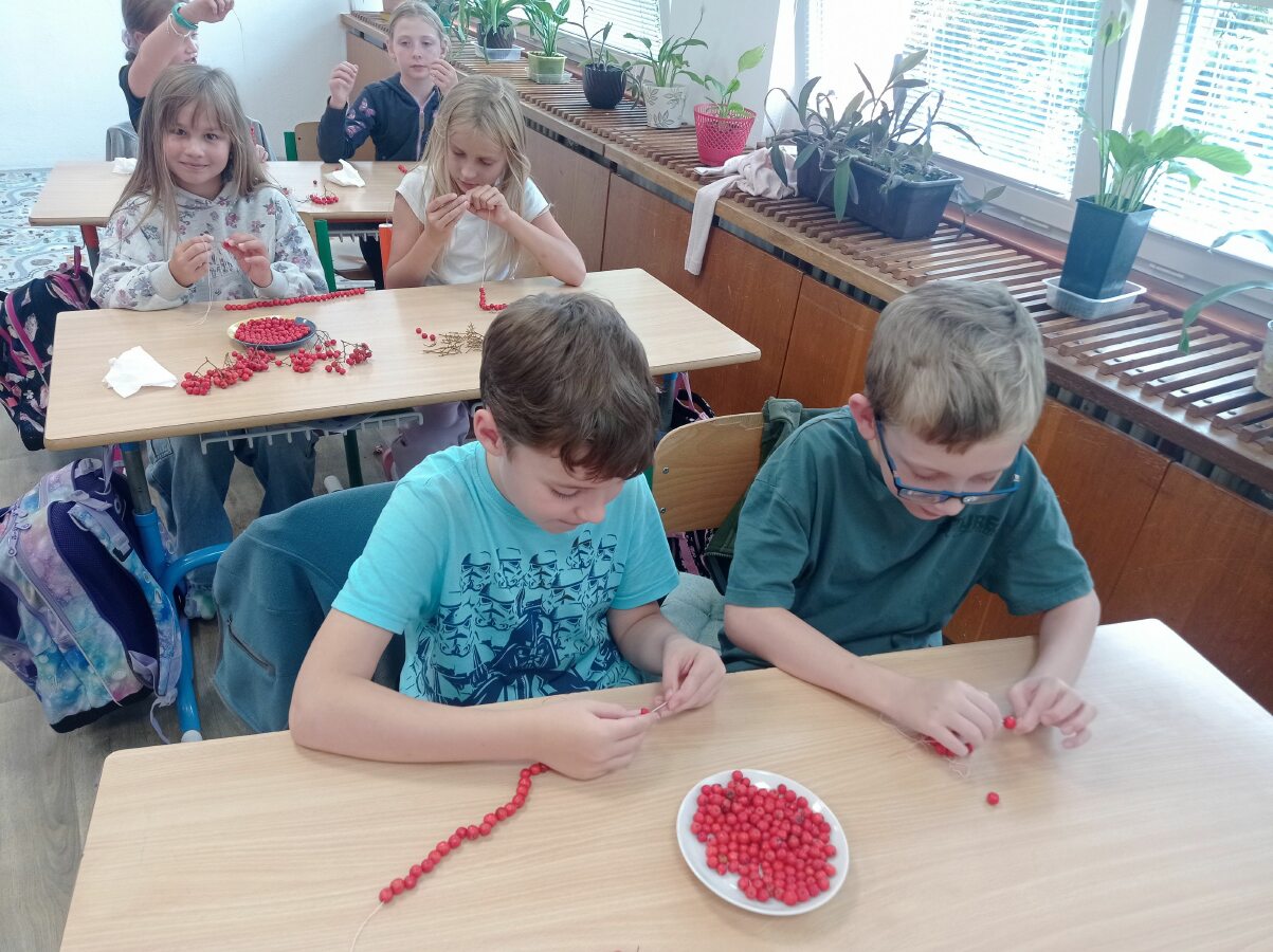 Příroda se pomalu ale jistě převléká do podzimních šatů... Tak jsme využili její dary a vyrobili si korálky z jeřabin.