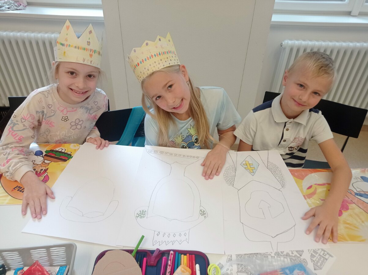 Dále jsme si vyrobili portréty princezen a rytířů, obkreslovali jsme a vybarvovali zdobené domy a rozvíjeli svou výtvarnou tvořivost.