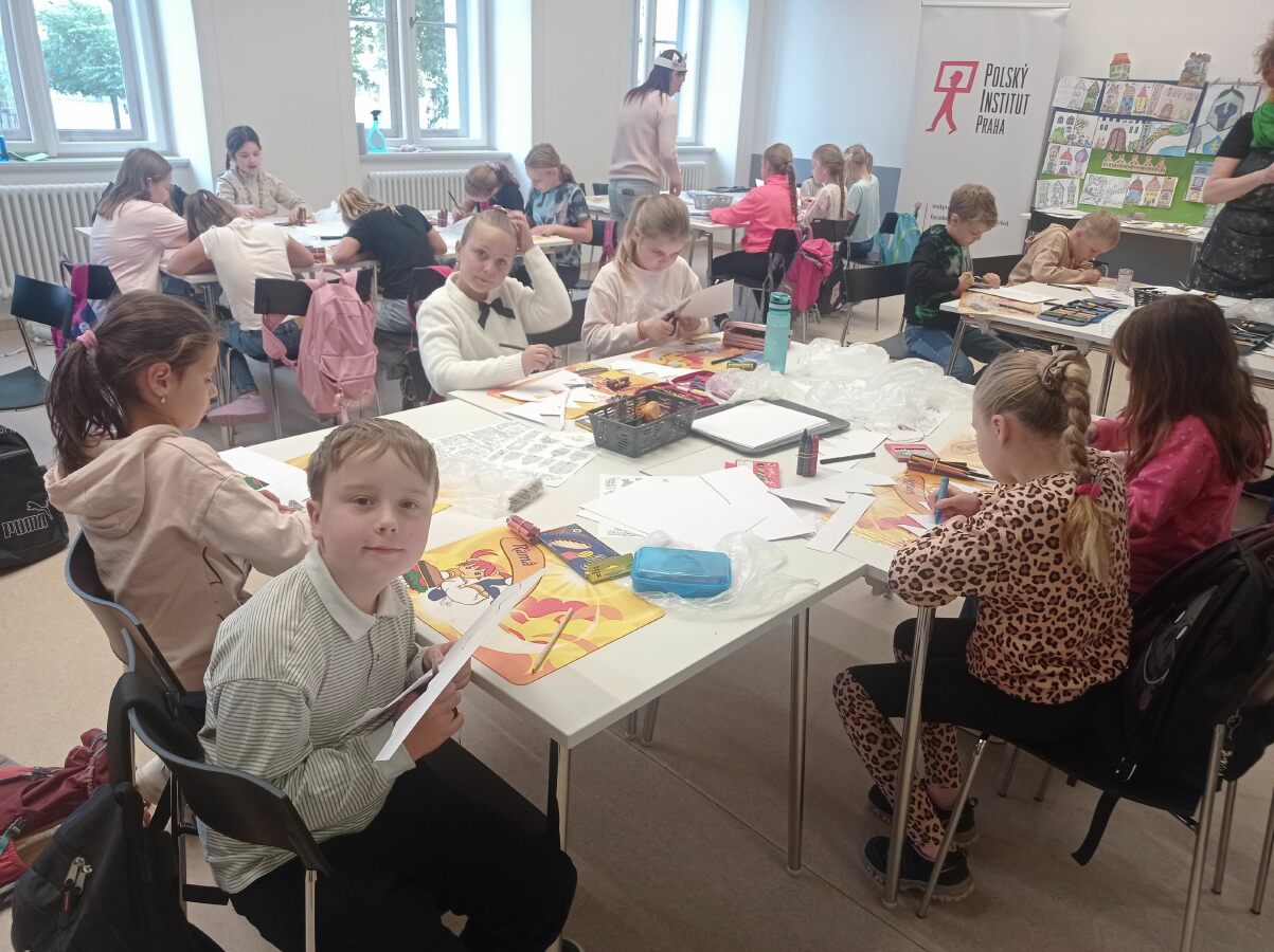 Ve středu 24. 9. jsme dostali v Městské knihovně v Kutné Hoře příležitost seznámit se a pracovat s polskou ilustrátorkou a výtvarnicí paní Martou Hilbert. Paní Marta nás přivítala krásnou češtinou a společně jsme se naučili pozdravit a představit se i v polštině. Potom jsme už začali tvořit...