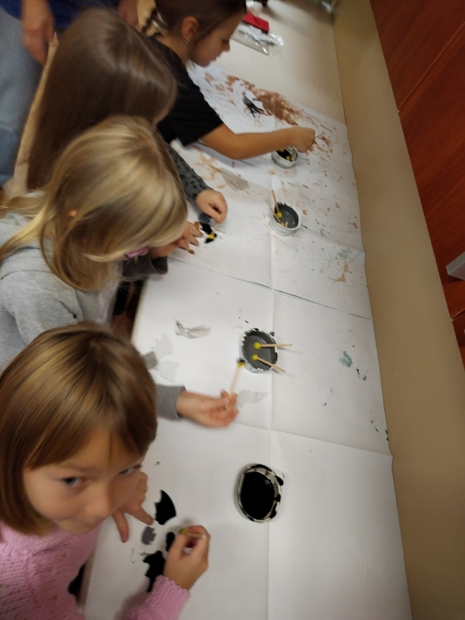 V pondělí 20.10. jsme šli vyrábět krásné strašidelné závěsy na halloween. který se nám blíží. Trénovali jsme malování, navlékání, uzlíky a všem vznikl krásný závěs. Děti měly z celé práce velikou radost. děkujeme POD HORAMI za realizaci dílničky.