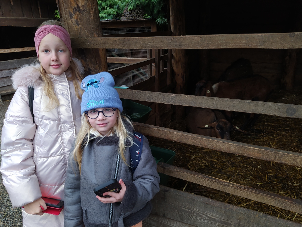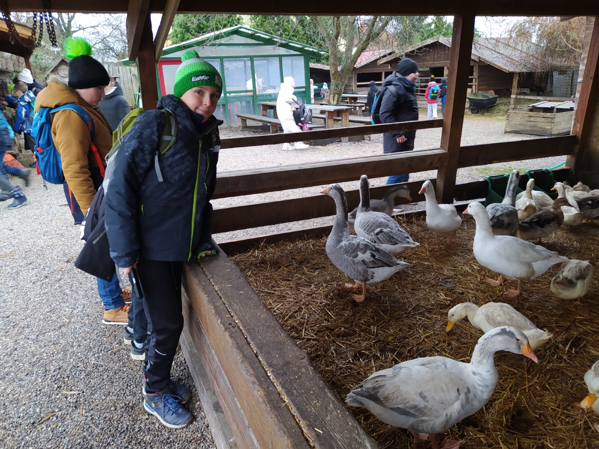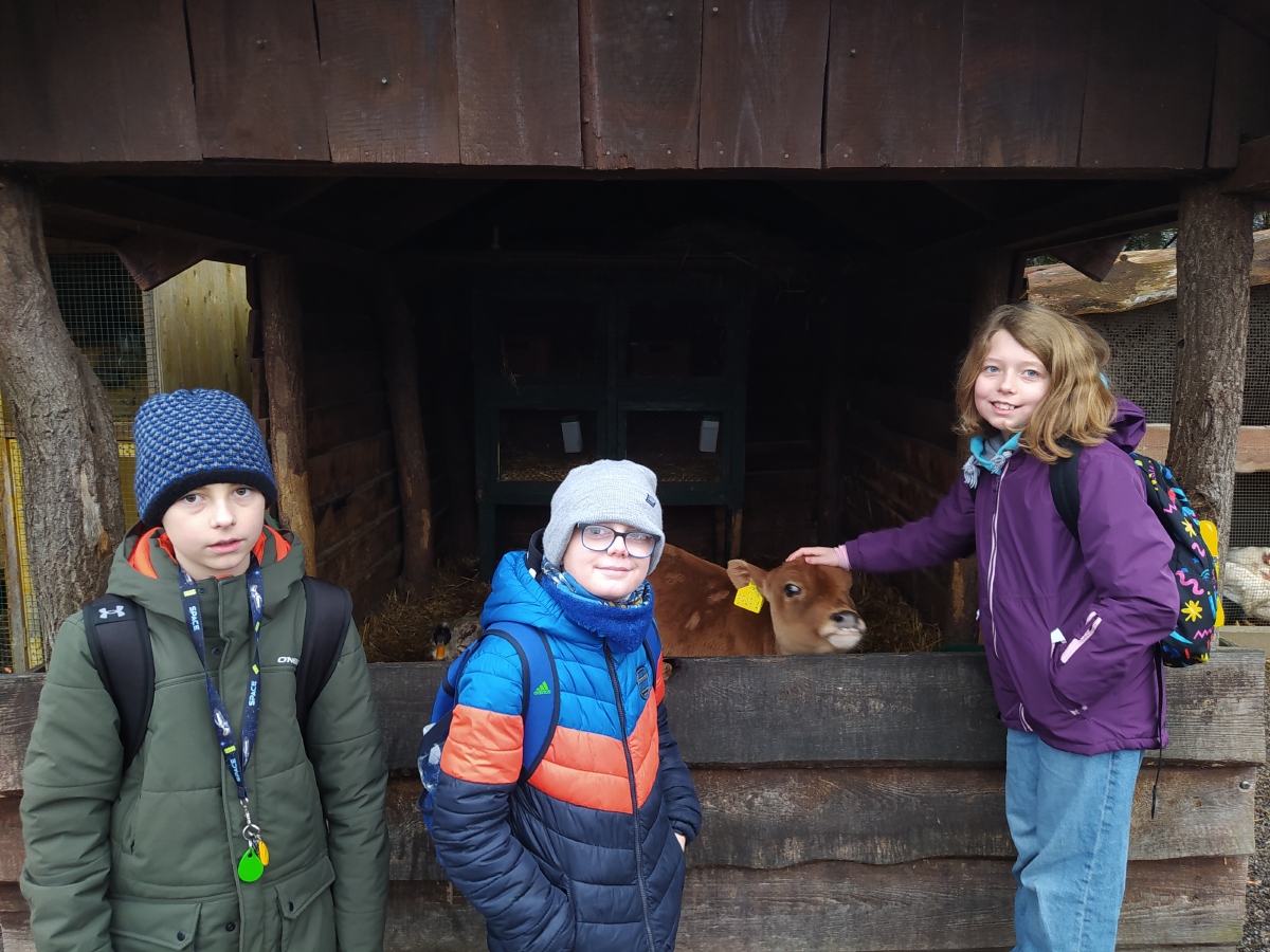 Hned po příjezdu si žáci mohli prohlédnout a pohladit zvířátka jako například kozy, telátka, oslíky, králíky a další.