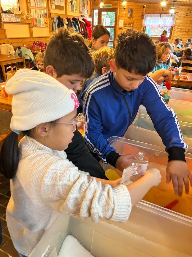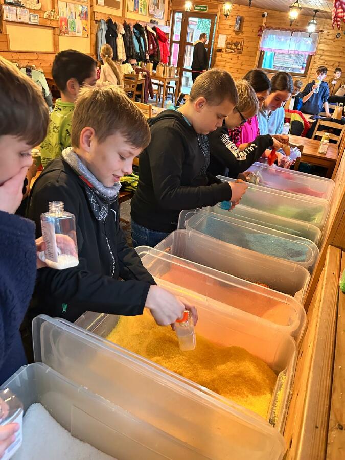 Následně se pustili do výroby vanočních dárečků pro sebe a své blízké. Jedna skupinka vyráběla svíčky ve tvaru stromečku, kapříka či prasátka, namáčela je do barevných vosků a tak vznikla krásná pestrobarevná díla. Další skupinka si plnila lahvičky voňavou solí — děti si mohly vybírat z různých barev i vůní, například s rozmarýnem, bergamotem nebo levandulí. Poslední skupinka si odlévala vosk do skořápek, ze kterých tak vznikly malé lodičky.
