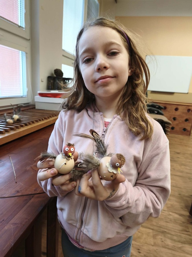 Dne 24. února se 4.A pustila do tvoření krásné velikonoční dekorace. Žáci vyráběli ptačí rodinku a práce jim šla hezky od ruky. Zdobili vajíčko jemnými peříčky a vyzkoušeli si zatloukání hřebíků kladivem, což pro mnohé byla nová a zajímavá zkušenost. Mezi hřebíčky proplétali provázek a vzniklo tak krásné hnízdečko pro ptáčky. Jak se všem jejich ptačí rodinka nádherně povedla, si můžete prohlédnout ve fotogalerii.