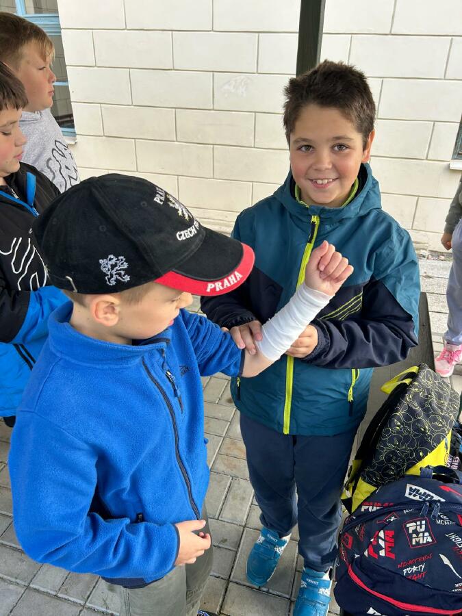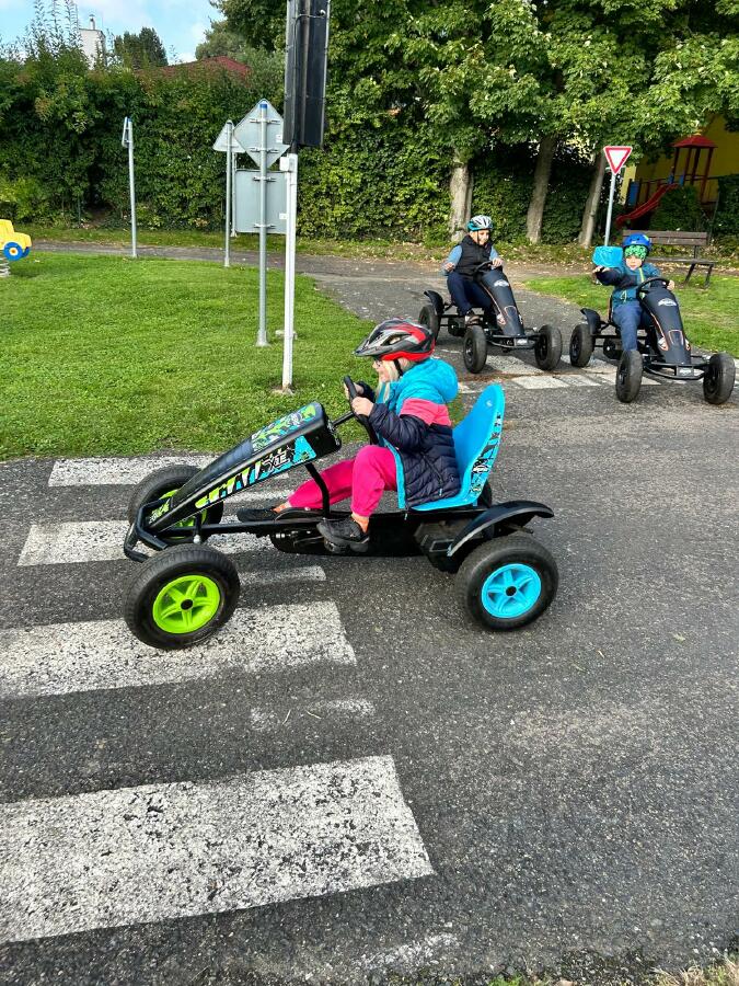 Žáci 4.A prožili svůj branný den v Domově dětí a mládeže, kde na ně čekal pestrý program. Začali jsme povídáním o tom, jak se bezpečně pohybovat na koloběžce a jak poskytnout základní první pomoc. Poté si děti své znalosti vyzkoušely v praxi – na koloběžkách a motokárách. Na hřišti, vybaveném značkami a semafory, si mohly natrénovat, jak se chovat jako správní účastníci silničního provozu. Na závěr všechny čekal test, který prověřil jejich znalosti z dopravní výchovy. Některé žáky test trochu potrápil, ale nakonec si všichni odnesli průkaz cyklisty, který je jejich prvním důležitým krokem k samostatné jízdě v silničním provozu.