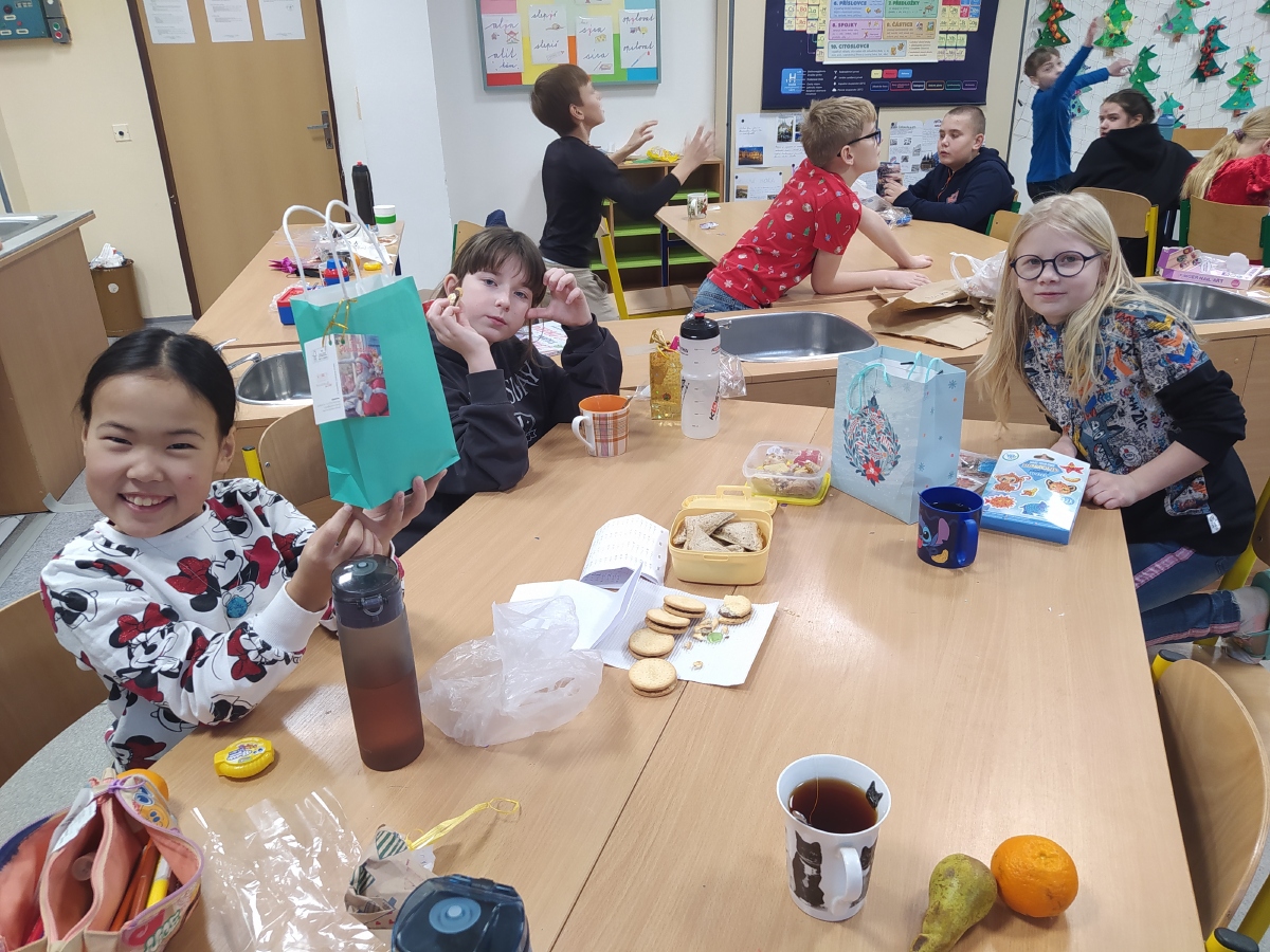 Poslední den před vánočními prázdninami si třída 4.A užila ve znamení radosti a vánoční atmosféry. Hned ráno si žáci 1. stupně navzájem zazpívali vánoční koledy, které nacvičili na školní besídku. Po návratu do třídy následovalo rozdávání vánočních dárečků, protože se všichni už nemohli dočkat. Děti měly z dárků velkou radost a hned si s nimi začaly hrát. Poté jsme se rozloučili a už se všichni těšili domů na prázdniny a příchod Ježíška. ![]()