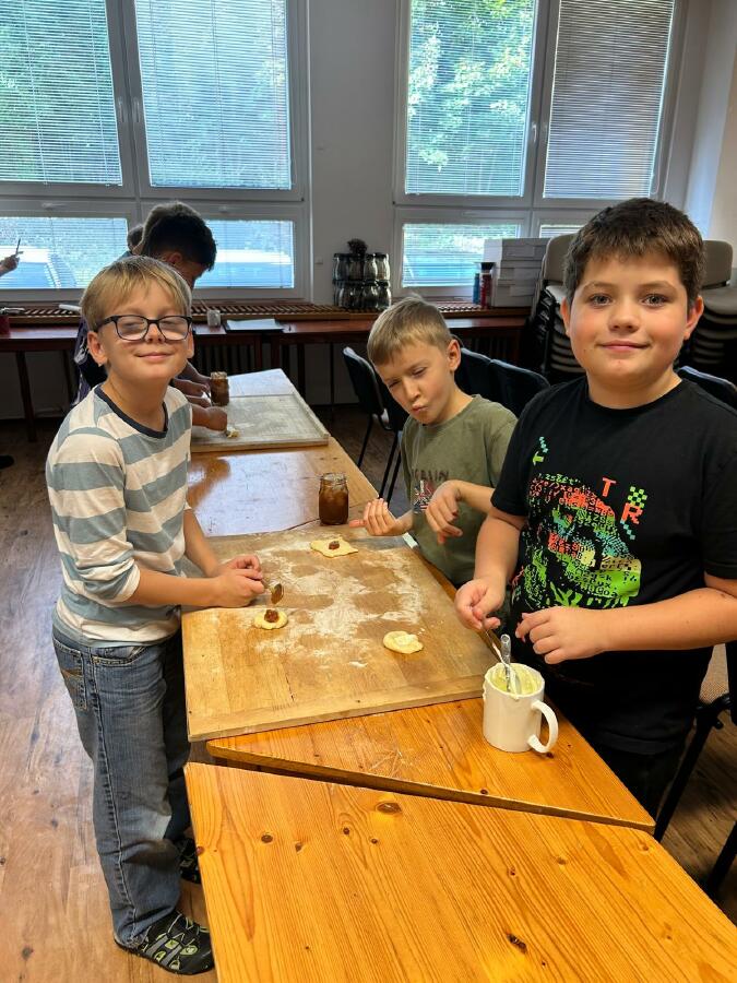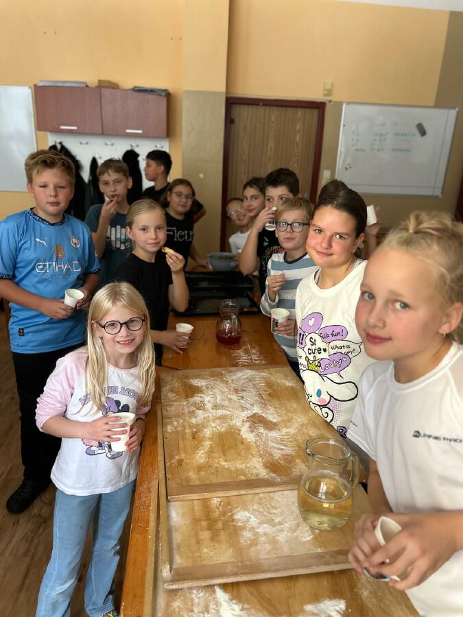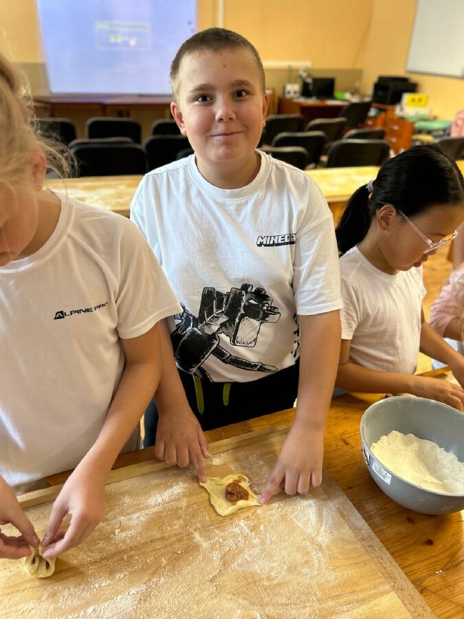 Na úvod si děti vyzkoušely, jaké to je být malým pekařem – upekly si voňavé posvícenské koláče, které plnily tvarohovou náplní a sladkým kdoulovým džemem. Vůně čerstvých koláčů provoněla celou učebnu a navodila tu pravou podzimní atmosféru.
