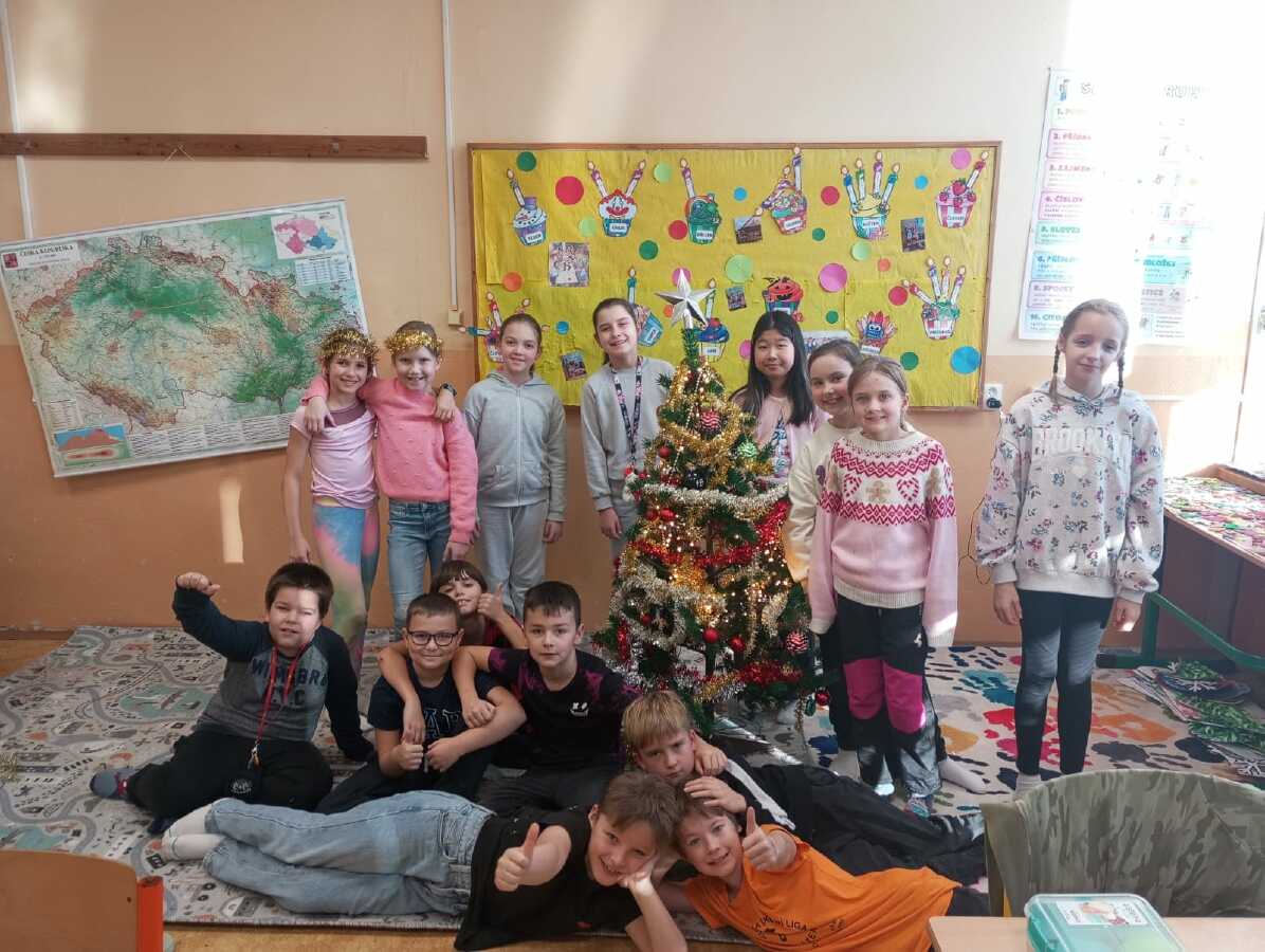 Ve třídě jsme si ozdobili náš vánoční stromeček, kde dominuje ozdoba s nápisem 4.B.