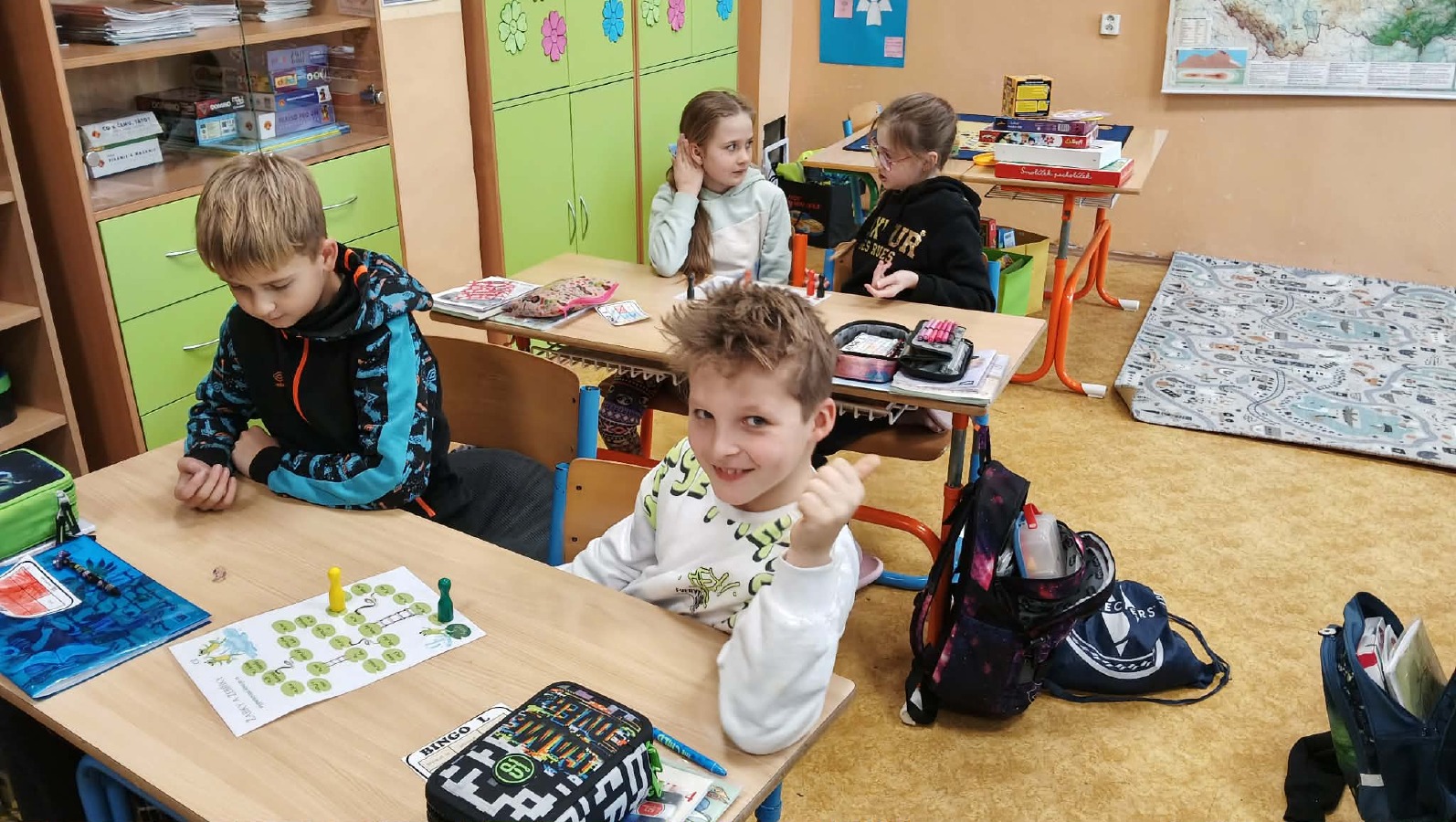 Žáči 4.B si zkusili jednoduchou a zábavnou deskovou hru, která pomáhá žákům opakovat vyjmenovaná slova hravou formou.