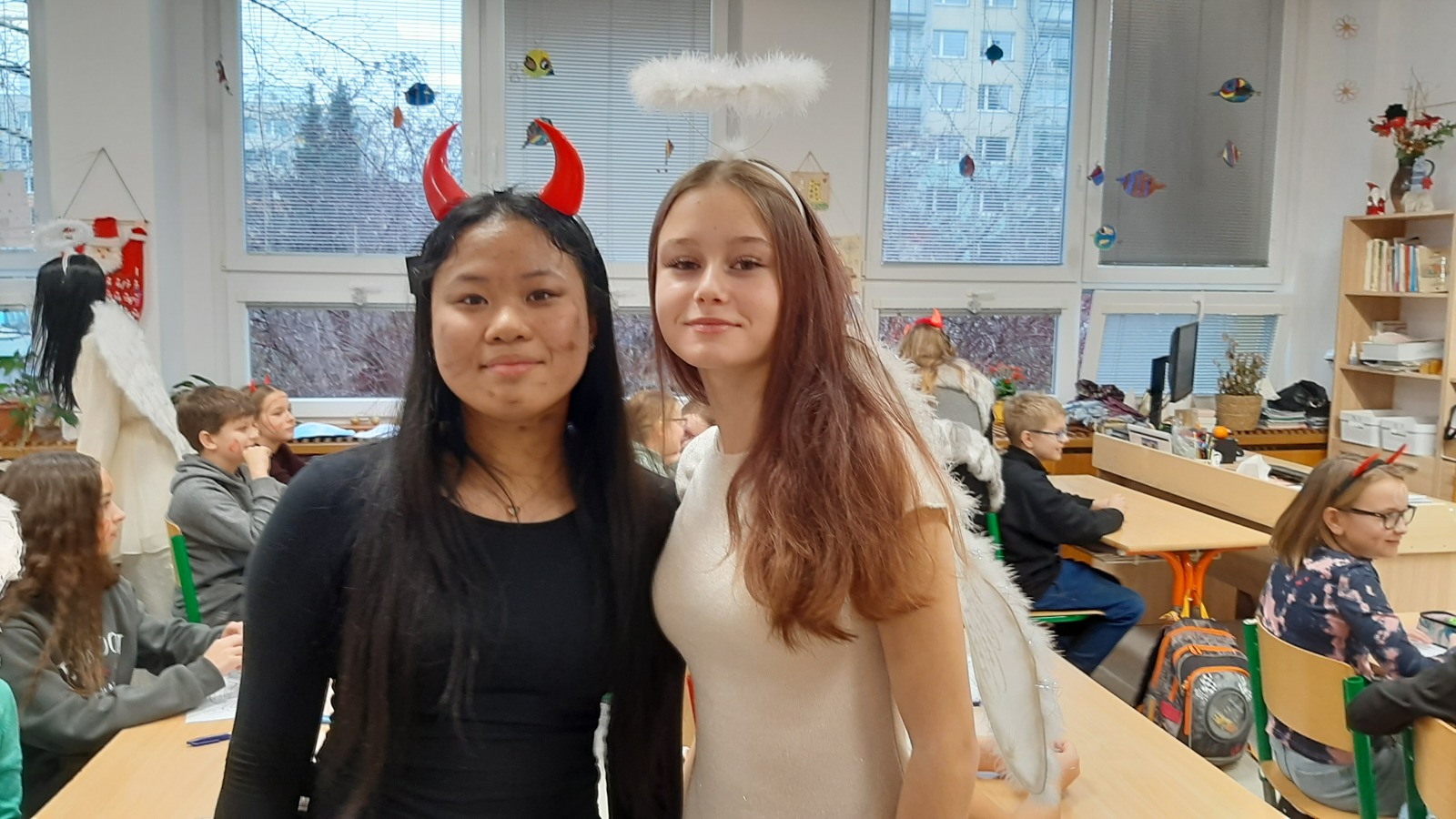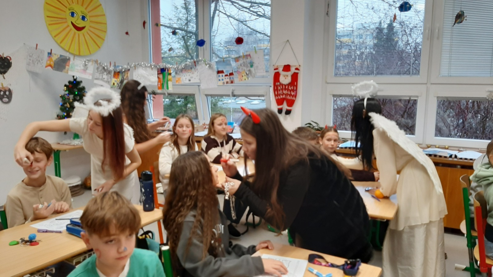 V pátek 5.prosince také do 5.C zavítali nebeské a pekelné bytosti.