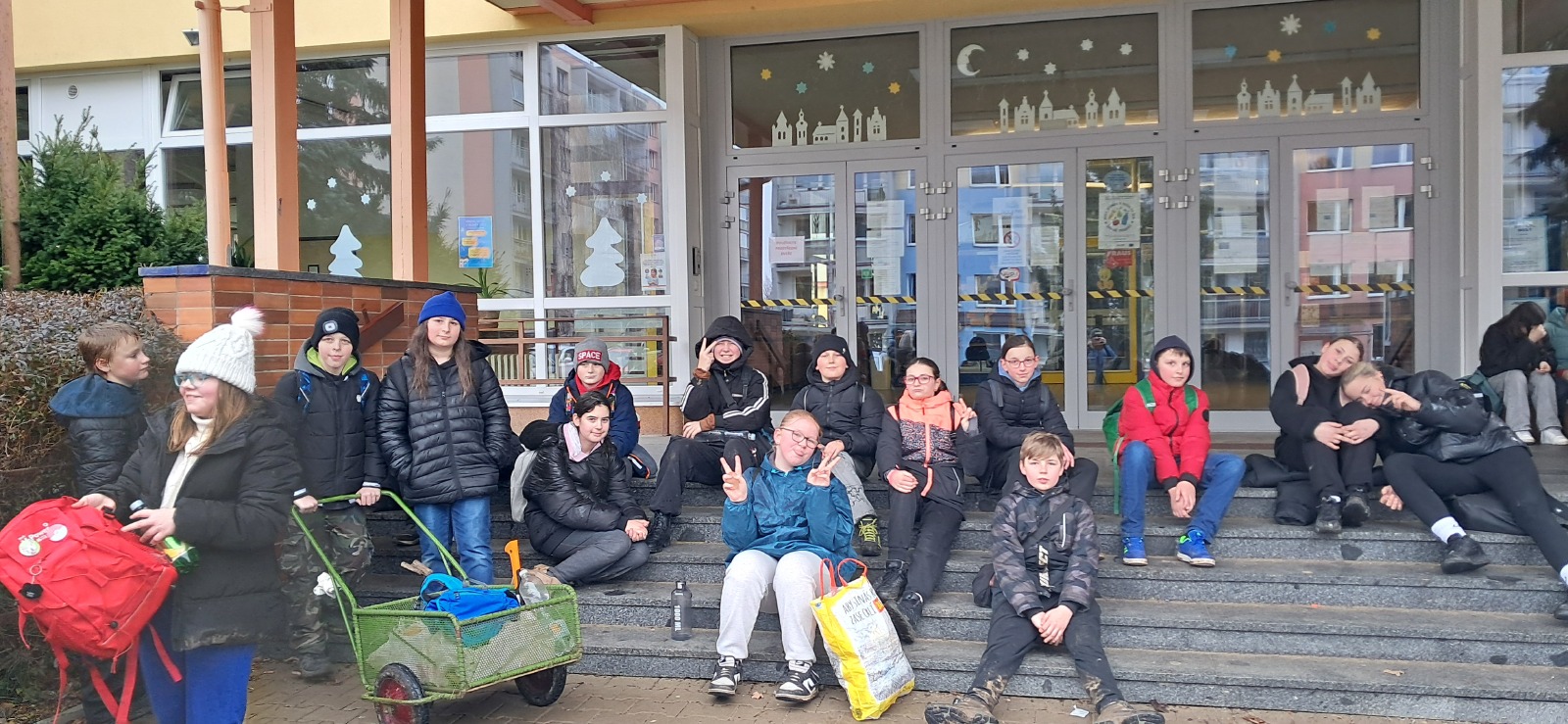 Výlet třídy 6.A začal tím, že jsme se ráno sešli před školou a naplánovali trasu. Nejprve se dva spolužáci dohadovali s panem učitelem a paní asistentkou. Poté jsme konečně mohli vyrazit. Po cestě jsme se zastavili ještě v Bille pro čerstvé pečivo a pití na cestu. Někteří si celou cestu stěžovali, jiní se těšili až dojdou do cíle. Samozřejmě došlo i na konflikty, ale naštěstí to nebylo nic hrozného. Když jsme procházeli dlouhým tunelem vedoucím k Velkému rybníku, tak si někteří pouštěli písničky, aby se nebáli. Byla tam tma a holky furt řvali. Když jsme přišli k tábořišti do Bylan, tak kluci začali připravovat dřevo, které si celou cestu vezli s sebou a holky připravovaly věci na opíkání. Někteří si opekli buřty nebo maršmelouny, chleba i rohlík. Po chvíli začalo mírně pršet. Všichni se báli, že nám oheň uhasí, ale nestalo se tak. Po pár hodinách jsme se sbalili, uhasili oheň a vyrazili na cestu nazpět. Cestou jsme trochu zmokli a stěžovali si, že nás bolí nohy a furt jsme zastavovali. Když jsme přicházeli ke škole, tak jsme ještě nakrmili kachny v rybníce zbylým pečivem. Před školou jsme se vyfotili a rozloučili.
