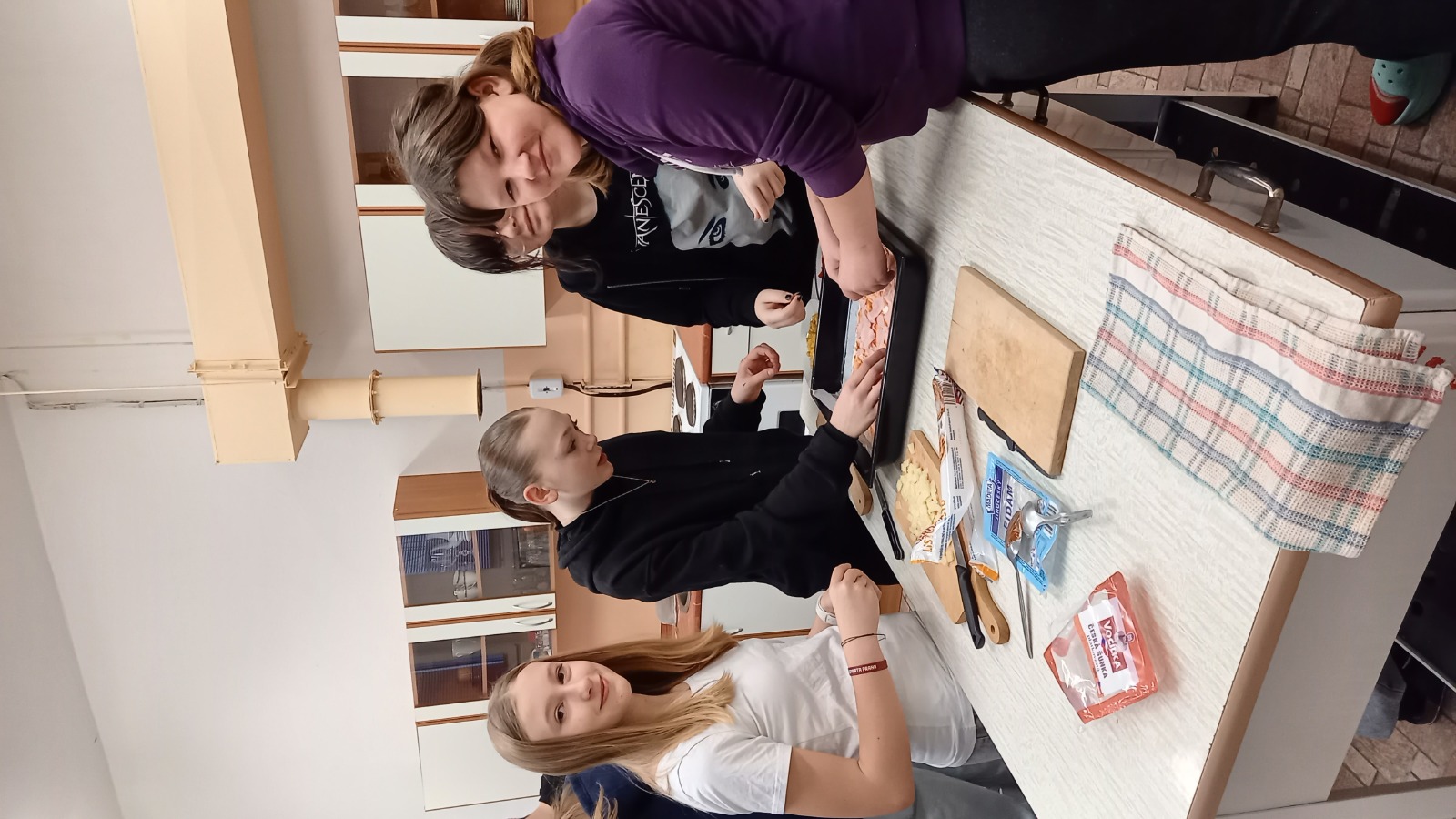 V rámci podpory wellbeingu ve třídě 7.C jsme si pro společné trávení času o velké přestávce mohli zahrát hry nebo plnit různé aktivity. Žáci měli možnost aktivně si odpočinout a posílit třídní vztahy. V úterý 10. února jsme si společně zpestřili výuku také praktickou aktivitou v kuchyňce, kde jsme pekli pizzu. Při přípravě jsme si procvičili zlomky – například při dělení surovin i samotné pizzy na jednotlivé části. Učení tak probíhalo přirozeně, hravou a chutnou formou. Společné pečení přineslo nejen procvičení matematické dovednosti, ale také radost z týmové práce a společného zážitku.